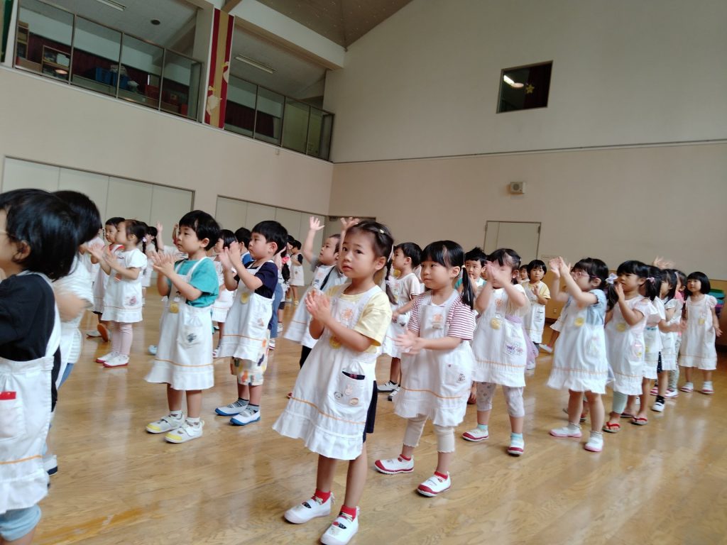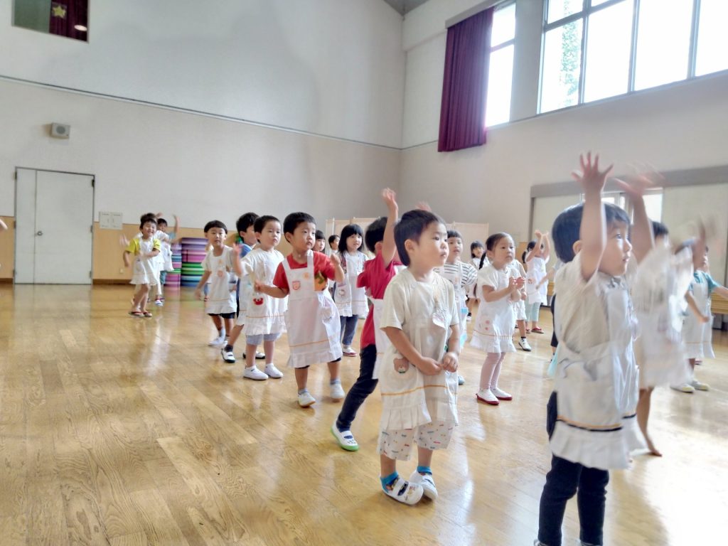 お東ブログ HOME > お東ブログ > お東ブログ > お遊戯室で踊ったよ♪ お東ブログ 年少 2025-09-04 お遊戯室で踊ったよ♪ 運動会に向け、音楽に合わせて踊ってみたよ♪まずは、先生たちが踊っているのを見たよ!「踊ってみたい人?」と聞くと、元気いっぱい「はーい♪」みんなで一緒に踊ってみました。途中で1つの大丸になって、踊ったよ♫これから、練習頑張ろうね♫ 前の記事へ 一覧へ戻る 次の記事へ クラス別 年長 (1,102) 年中 (896) 年少 (897) もも (845) 一般(本園への入園をご検討中の方) (5) 過去の情報 2026年4月 (5) 2026年3月 (23) 2026年2月 (24) 2026年1月 (19) 2025年12月 (18) 2025年11月 (20) 2025年10月 (27) 2025年9月 (26) 2025年8月 (7) 2025年7月 (40) 2025年6月 (26) 2025年5月 (30) 2025年4月 (15) 2025年3月 (19) 2025年2月 (20) 2025年1月 (22) 2024年12月 (16) 2024年11月 (22) 2024年10月 (25) 2024年9月 (27) 2024年8月 (7) 2024年7月 (46) 2024年6月 (25) 2024年5月 (28) 2024年4月 (18) 2024年3月 (25) 2024年2月 (27) 2024年1月 (16) 2023年12月 (16) 2023年11月 (22) 2023年10月 (30) 2023年9月 (25) 2023年8月 (7) 2023年7月 (44) 2023年6月 (30) 2023年5月 (31) 2023年4月 (27) 2023年3月 (27) 2023年2月 (40) 2023年1月 (27) 2022年12月 (33) 2022年11月 (36) 2022年10月 (40) 2022年9月 (34) 2022年8月 (5) 2022年7月 (41) 2022年6月 (42) 2022年5月 (25) 2022年4月 (15) 2022年3月 (29) 2022年2月 (29) 2022年1月 (24) 2021年12月 (23) 2021年11月 (30) 2021年10月 (45) 2021年9月 (37) 2021年8月 (9) 2021年7月 (34) 2021年6月 (42) 2021年5月 (36) 2021年4月 (20) 2021年3月 (30) 2021年2月 (40) 2021年1月 (27) 2020年12月 (33) 2020年11月 (39) 2020年10月 (44) 2020年9月 (53) 2020年8月 (24) 2020年7月 (40) 2020年6月 (42) 2020年5月 (14) 2020年4月 (2) 2020年3月 (2) 2020年2月 (37) 2020年1月 (36) 2019年12月 (25) 2019年11月 (51) 2019年10月 (49) 2019年9月 (40) 2019年8月 (9) 2019年7月 (48) 2019年6月 (38) 2019年5月 (36) 2019年4月 (16) 2019年3月 (19) 2019年2月 (32) 2019年1月 (23) 2018年12月 (19) 2018年11月 (39) 2018年10月 (46) 2018年9月 (30) 2018年8月 (8) 2018年7月 (21) 2018年6月 (28) 2018年5月 (5) カテゴリー 100周年記念行事 (12) 園行事 (374) お東ブログ (2,556)