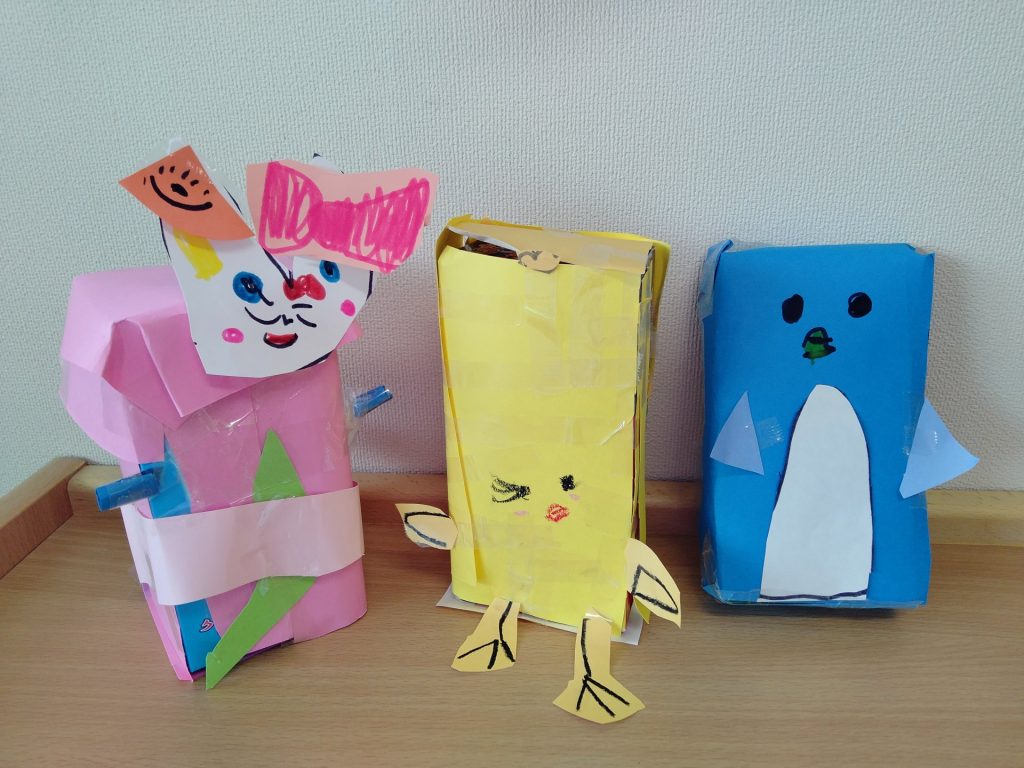 お東ブログ HOME > お東ブログ > お東ブログ > 初めての廃材工作!! お東ブログ 年中 2025-09-11 初めての廃材工作!! 2学期から提供いただいていた廃材で、初めての廃材工作に取り組みました!「テーマは動物!」ということで、それぞれが作りたい動物のサイズに合った箱を選びました!箱を折り紙やケント紙で巻いて、テープでつなげて、顔や耳、腕などをつけて完成* 今後も自由遊びで廃材工作に取り組んでいきます。廃材の提供を引き続きよろしくお願いいたします!! 前の記事へ 一覧へ戻る 次の記事へ クラス別 年長 (1,102) 年中 (896) 年少 (897) もも (845) 一般(本園への入園をご検討中の方) (5) 過去の情報 2026年4月 (5) 2026年3月 (23) 2026年2月 (24) 2026年1月 (19) 2025年12月 (18) 2025年11月 (20) 2025年10月 (27) 2025年9月 (26) 2025年8月 (7) 2025年7月 (40) 2025年6月 (26) 2025年5月 (30) 2025年4月 (15) 2025年3月 (19) 2025年2月 (20) 2025年1月 (22) 2024年12月 (16) 2024年11月 (22) 2024年10月 (25) 2024年9月 (27) 2024年8月 (7) 2024年7月 (46) 2024年6月 (25) 2024年5月 (28) 2024年4月 (18) 2024年3月 (25) 2024年2月 (27) 2024年1月 (16) 2023年12月 (16) 2023年11月 (22) 2023年10月 (30) 2023年9月 (25) 2023年8月 (7) 2023年7月 (44) 2023年6月 (30) 2023年5月 (31) 2023年4月 (27) 2023年3月 (27) 2023年2月 (40) 2023年1月 (27) 2022年12月 (33) 2022年11月 (36) 2022年10月 (40) 2022年9月 (34) 2022年8月 (5) 2022年7月 (41) 2022年6月 (42) 2022年5月 (25) 2022年4月 (15) 2022年3月 (29) 2022年2月 (29) 2022年1月 (24) 2021年12月 (23) 2021年11月 (30) 2021年10月 (45) 2021年9月 (37) 2021年8月 (9) 2021年7月 (34) 2021年6月 (42) 2021年5月 (36) 2021年4月 (20) 2021年3月 (30) 2021年2月 (40) 2021年1月 (27) 2020年12月 (33) 2020年11月 (39) 2020年10月 (44) 2020年9月 (53) 2020年8月 (24) 2020年7月 (40) 2020年6月 (42) 2020年5月 (14) 2020年4月 (2) 2020年3月 (2) 2020年2月 (37) 2020年1月 (36) 2019年12月 (25) 2019年11月 (51) 2019年10月 (49) 2019年9月 (40) 2019年8月 (9) 2019年7月 (48) 2019年6月 (38) 2019年5月 (36) 2019年4月 (16) 2019年3月 (19) 2019年2月 (32) 2019年1月 (23) 2018年12月 (19) 2018年11月 (39) 2018年10月 (46) 2018年9月 (30) 2018年8月 (8) 2018年7月 (21) 2018年6月 (28) 2018年5月 (5) カテゴリー 100周年記念行事 (12) 園行事 (374) お東ブログ (2,556)