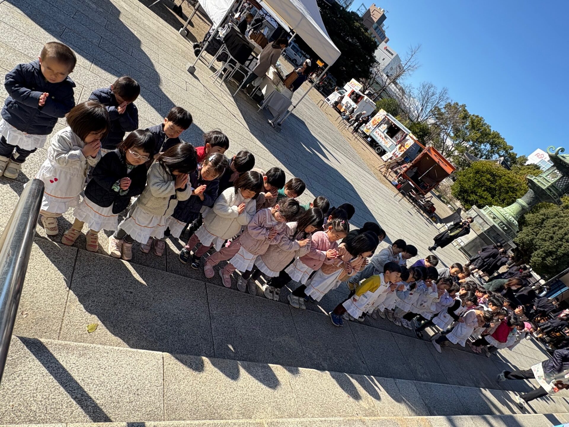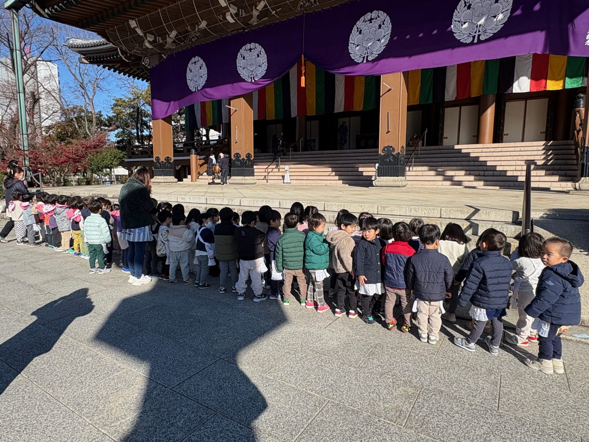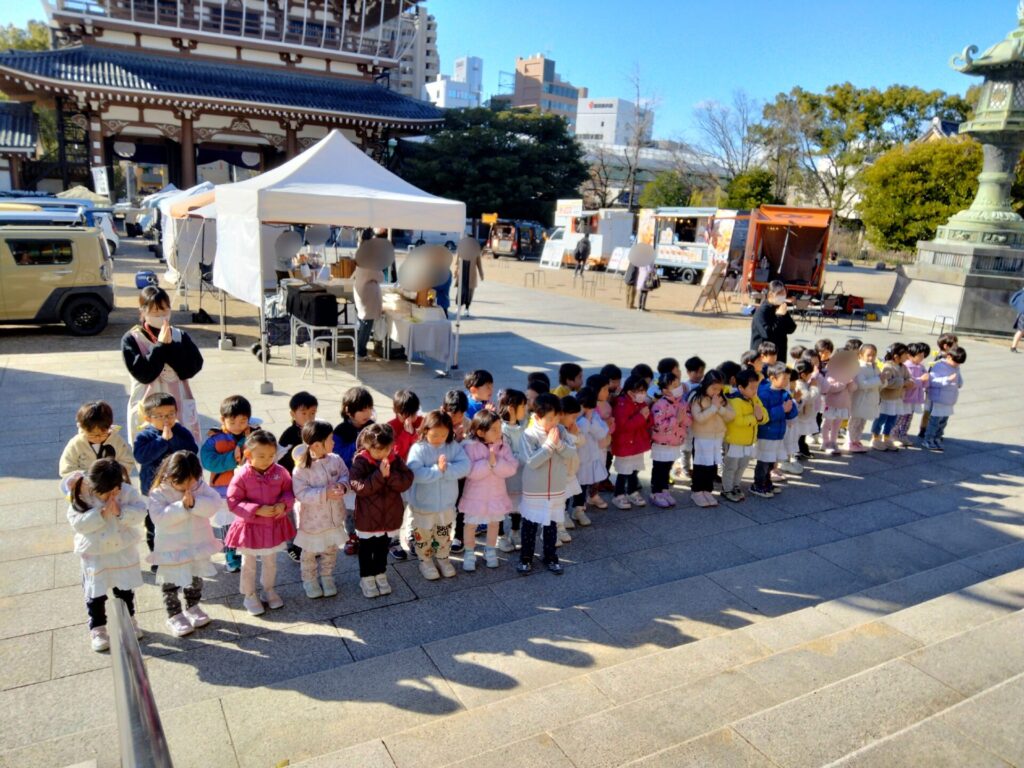 お東ブログ HOME > お東ブログ > 園行事 > 本堂参拝にいきました。 園行事 お東ブログ 年中 年少 もも 2025-12-15 本堂参拝にいきました。 幼稚園のお隣りの東別院にて報恩講が始まりました。【12月13日~12月18日】今日は年中組・年少組・もも組のお友だちが本堂へお参りに出掛けました。 おててを合わせて、しっかりお参りできました。「親鸞様、いつも見守っていてくれてありがとう」年長さんは、17日(水)に出掛け、10時より本堂にて「正信偈・同朋奉讃」をお勤めします。年長さん、よろしくね! 前の記事へ 一覧へ戻る 次の記事へ クラス別 年長 (1,102) 年中 (896) 年少 (897) もも (845) 一般(本園への入園をご検討中の方) (5) 過去の情報 2026年4月 (5) 2026年3月 (23) 2026年2月 (24) 2026年1月 (19) 2025年12月 (18) 2025年11月 (20) 2025年10月 (27) 2025年9月 (26) 2025年8月 (7) 2025年7月 (40) 2025年6月 (26) 2025年5月 (30) 2025年4月 (15) 2025年3月 (19) 2025年2月 (20) 2025年1月 (22) 2024年12月 (16) 2024年11月 (22) 2024年10月 (25) 2024年9月 (27) 2024年8月 (7) 2024年7月 (46) 2024年6月 (25) 2024年5月 (28) 2024年4月 (18) 2024年3月 (25) 2024年2月 (27) 2024年1月 (16) 2023年12月 (16) 2023年11月 (22) 2023年10月 (30) 2023年9月 (25) 2023年8月 (7) 2023年7月 (44) 2023年6月 (30) 2023年5月 (31) 2023年4月 (27) 2023年3月 (27) 2023年2月 (40) 2023年1月 (27) 2022年12月 (33) 2022年11月 (36) 2022年10月 (40) 2022年9月 (34) 2022年8月 (5) 2022年7月 (41) 2022年6月 (42) 2022年5月 (25) 2022年4月 (15) 2022年3月 (29) 2022年2月 (29) 2022年1月 (24) 2021年12月 (23) 2021年11月 (30) 2021年10月 (45) 2021年9月 (37) 2021年8月 (9) 2021年7月 (34) 2021年6月 (42) 2021年5月 (36) 2021年4月 (20) 2021年3月 (30) 2021年2月 (40) 2021年1月 (27) 2020年12月 (33) 2020年11月 (39) 2020年10月 (44) 2020年9月 (53) 2020年8月 (24) 2020年7月 (40) 2020年6月 (42) 2020年5月 (14) 2020年4月 (2) 2020年3月 (2) 2020年2月 (37) 2020年1月 (36) 2019年12月 (25) 2019年11月 (51) 2019年10月 (49) 2019年9月 (40) 2019年8月 (9) 2019年7月 (48) 2019年6月 (38) 2019年5月 (36) 2019年4月 (16) 2019年3月 (19) 2019年2月 (32) 2019年1月 (23) 2018年12月 (19) 2018年11月 (39) 2018年10月 (46) 2018年9月 (30) 2018年8月 (8) 2018年7月 (21) 2018年6月 (28) 2018年5月 (5) カテゴリー 100周年記念行事 (12) 園行事 (374) お東ブログ (2,556)