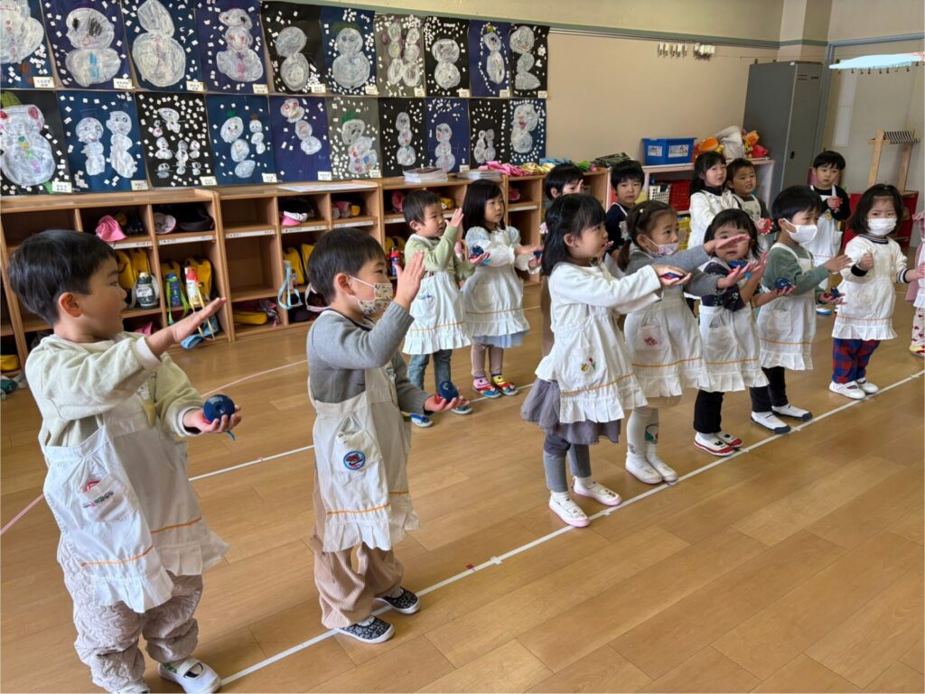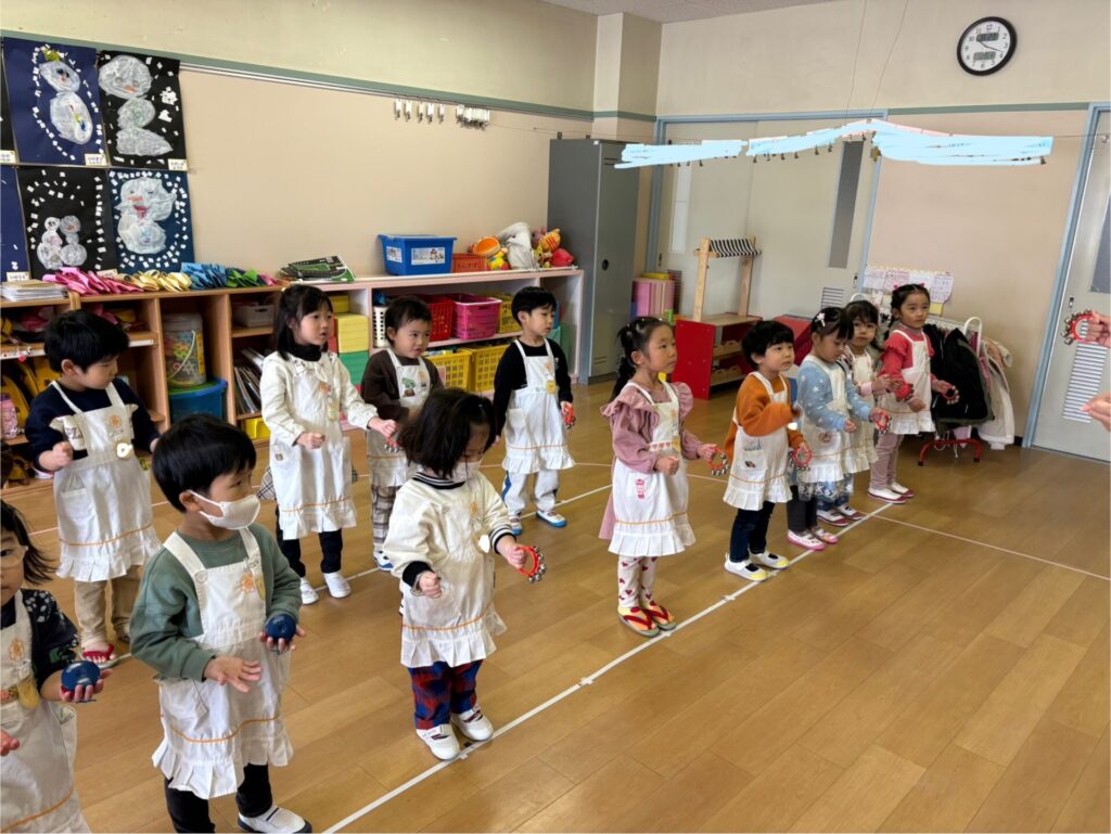 お東ブログ HOME > お東ブログ > お東ブログ > 器楽の練習♪ みんなで頑張っているよ♫ お東ブログ 年少 2026-01-28 器楽の練習♪ みんなで頑張っているよ♫ お遊戯会に向けて、器楽「となりのトトロ」。すずとカスタネットの練習を頑張っています✨「バナナ・メロン」のリズムで、上手に鳴らせるようになってきました♡明日は、お遊戯会総練習です。ドキドキするけど、みんなで頑張ろうね(・∀・)明日は、以前にお願いしたように本番と同じ服装で登園をお願いします。 前の記事へ 一覧へ戻る 次の記事へ クラス別 年長 (1,103) 年中 (897) 年少 (898) もも (845) 一般(本園への入園をご検討中の方) (6) 過去の情報 2026年4月 (6) 2026年3月 (23) 2026年2月 (24) 2026年1月 (19) 2025年12月 (18) 2025年11月 (20) 2025年10月 (27) 2025年9月 (26) 2025年8月 (7) 2025年7月 (40) 2025年6月 (26) 2025年5月 (30) 2025年4月 (15) 2025年3月 (19) 2025年2月 (20) 2025年1月 (22) 2024年12月 (16) 2024年11月 (22) 2024年10月 (25) 2024年9月 (27) 2024年8月 (7) 2024年7月 (46) 2024年6月 (25) 2024年5月 (28) 2024年4月 (18) 2024年3月 (25) 2024年2月 (27) 2024年1月 (16) 2023年12月 (16) 2023年11月 (22) 2023年10月 (30) 2023年9月 (25) 2023年8月 (7) 2023年7月 (44) 2023年6月 (30) 2023年5月 (31) 2023年4月 (27) 2023年3月 (27) 2023年2月 (40) 2023年1月 (27) 2022年12月 (33) 2022年11月 (36) 2022年10月 (40) 2022年9月 (34) 2022年8月 (5) 2022年7月 (41) 2022年6月 (42) 2022年5月 (25) 2022年4月 (15) 2022年3月 (29) 2022年2月 (29) 2022年1月 (24) 2021年12月 (23) 2021年11月 (30) 2021年10月 (45) 2021年9月 (37) 2021年8月 (9) 2021年7月 (34) 2021年6月 (42) 2021年5月 (36) 2021年4月 (20) 2021年3月 (30) 2021年2月 (40) 2021年1月 (27) 2020年12月 (33) 2020年11月 (39) 2020年10月 (44) 2020年9月 (53) 2020年8月 (24) 2020年7月 (40) 2020年6月 (42) 2020年5月 (14) 2020年4月 (2) 2020年3月 (2) 2020年2月 (37) 2020年1月 (36) 2019年12月 (25) 2019年11月 (51) 2019年10月 (49) 2019年9月 (40) 2019年8月 (9) 2019年7月 (48) 2019年6月 (38) 2019年5月 (36) 2019年4月 (16) 2019年3月 (19) 2019年2月 (32) 2019年1月 (23) 2018年12月 (19) 2018年11月 (39) 2018年10月 (46) 2018年9月 (30) 2018年8月 (8) 2018年7月 (21) 2018年6月 (28) 2018年5月 (5) カテゴリー 100周年記念行事 (12) 園行事 (374) お東ブログ (2,557)