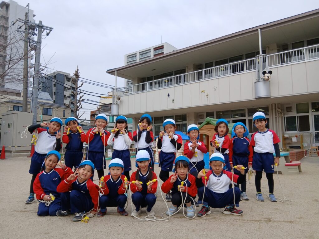 100回跳び達成のお友だちで記念撮影。がんばりました!!